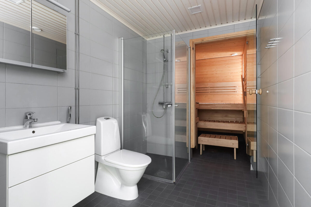 Kolmen huoneen, keittiön ja saunan kokonaisuus on selkeä ja helposti kalustettava. Asuinhuoneissa on helppohoitoinen laminaattilattia, ja kylpy- sekä wc-tiloissa keraaminen laatoitus tuo kestävyyttä ja siistiä ilmettä. Oma sauna lisää arjen mukavuutta.