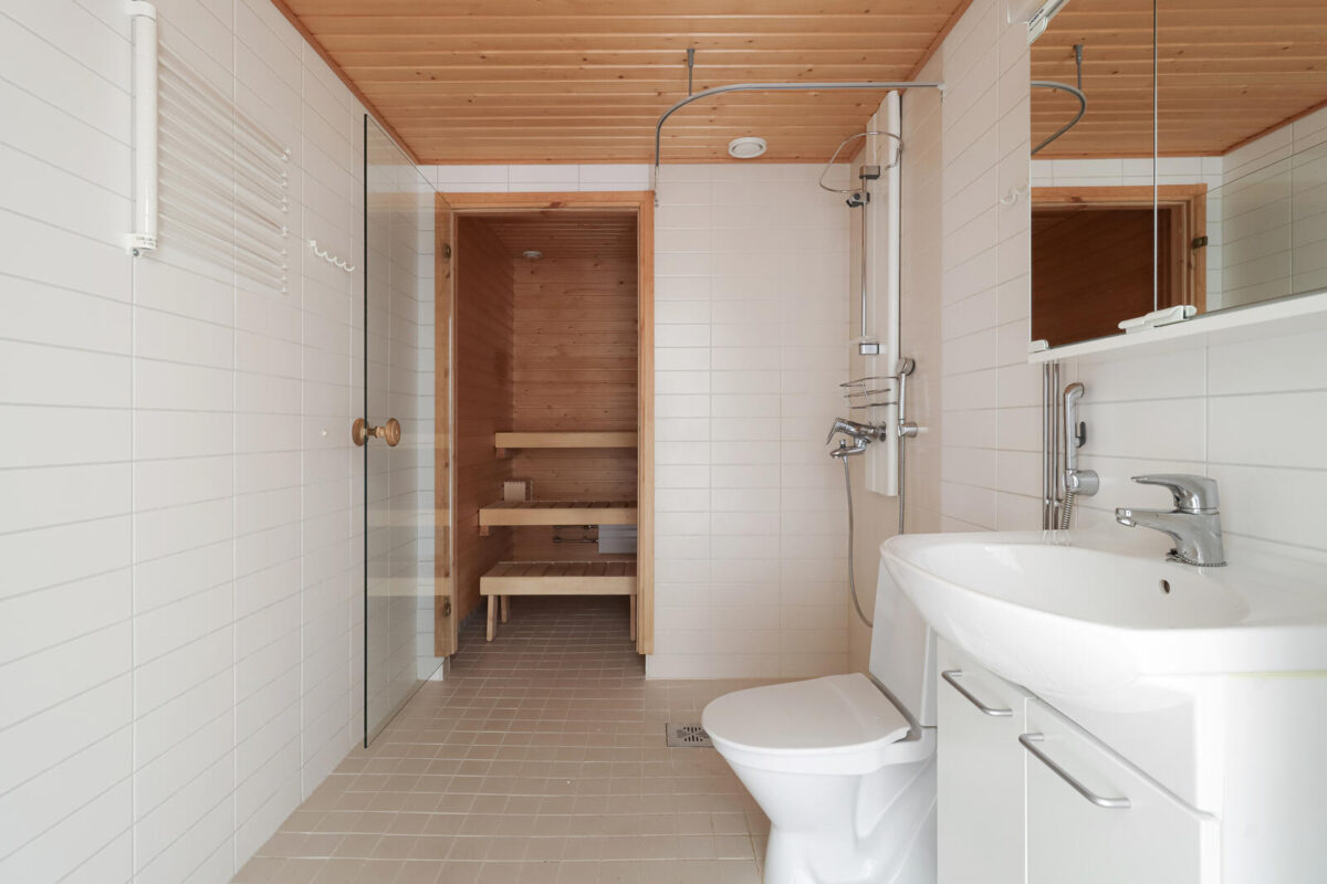 Oma sauna lisää asumisen mukavuutta ja mahdollistaa rentoutumisen arjen keskellä. Keittotila ja olohuone muodostavat yhtenäisen kokonaisuuden, jossa arjen rutiinit ja yhdessäolo sujuvat vaivattomasti. Makuuhuoneen rauhallisuus tukee levollisia yöunia tai keskittymistä etätyöhön.