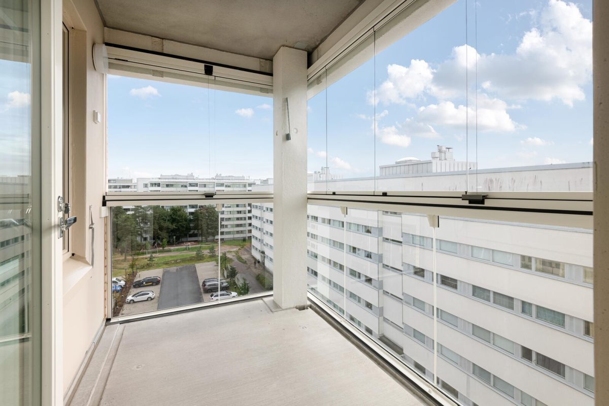 Asunnossa on lasitettu parveke. Lattiamateriaalina on laminaatti, märkätiloissa keraaminen laatoitus.
